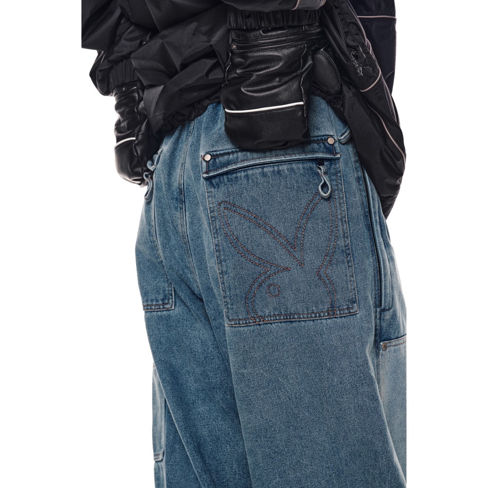 2526 디미토 플레이보이X디미토 더블 니 데님 와이드핏 LV2 보드복 팬츠 WASHED BLUE