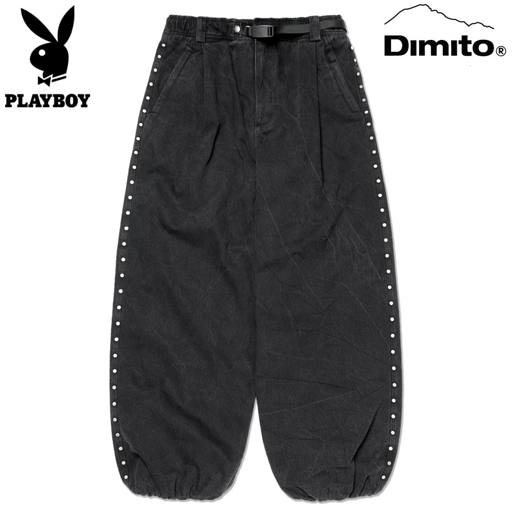 2526 디미토 플레이보이X디미토 스터드 라인 OG 데님 와이드핏 LV2 보드복 팬츠 WASHED BLACK
