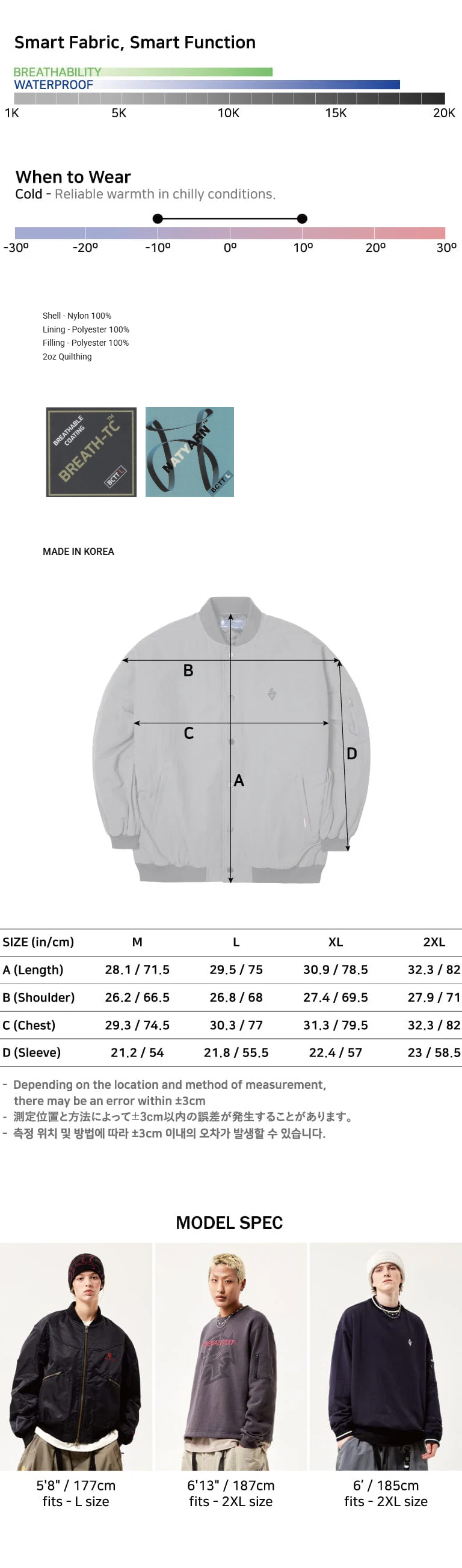 - 실측사이즈는 측정하는 사람,측정위치,생산공정을 거치면서 상품마다 사이즈오차가 조금씩 발생할수 있기 때문에 안내된 사이즈표와 수령품의 사이즈오차는 자연스런운 현상이므로 상품의 이상이 아닙니다 현저한 차이경우엔 매장으로 연락바랍니다